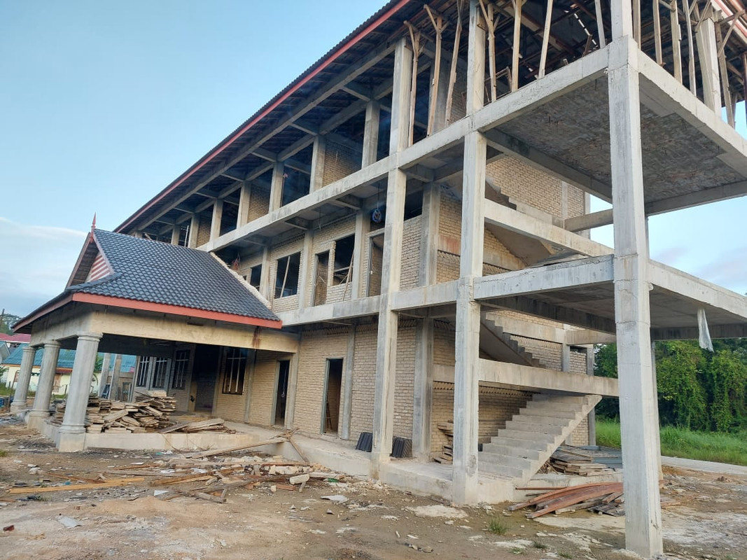 Berkat sumbangan serta kegigihan setiap para penyumbang untuk merialisasikan bangunan ini, beberapa proses untuk mendirikan bangunan ini telah berjaya dilakukan iaitu pembinaan tapak, tiang dan bumbung.